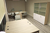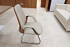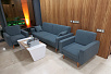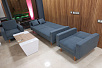 Кресла выбрали современного дизайна 6002-1 и для посетителей 6002-3 в сером цвете экокожи, чтобы гармонировало с серой отделкой окон.