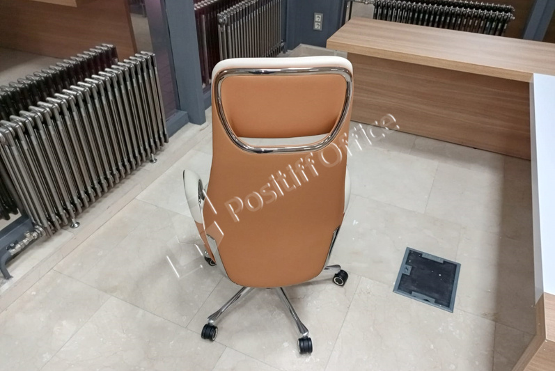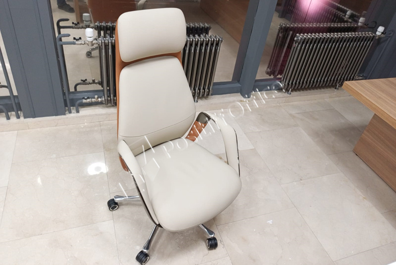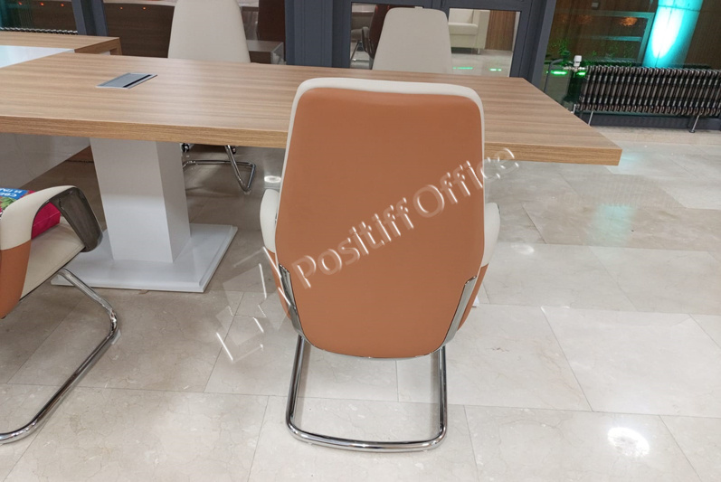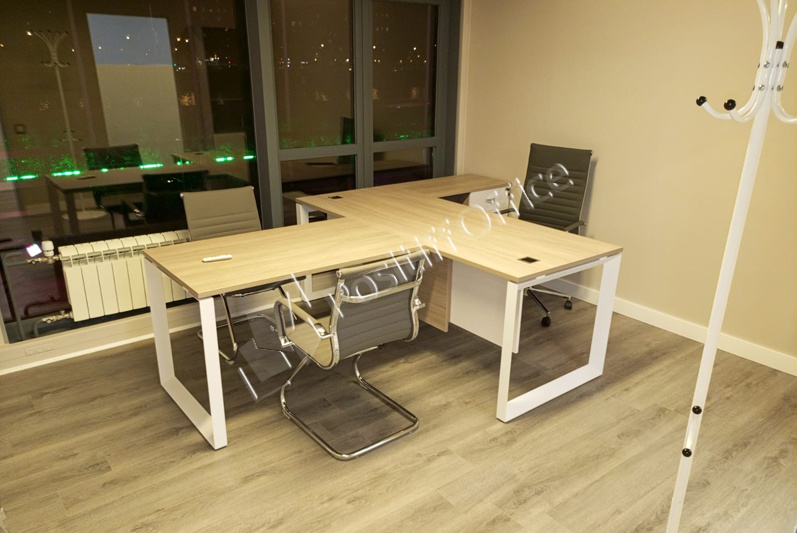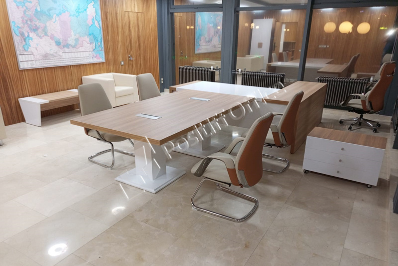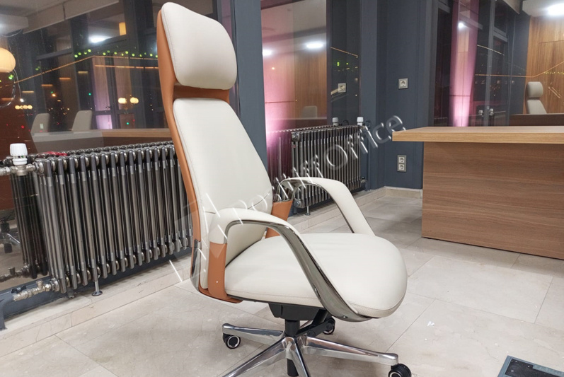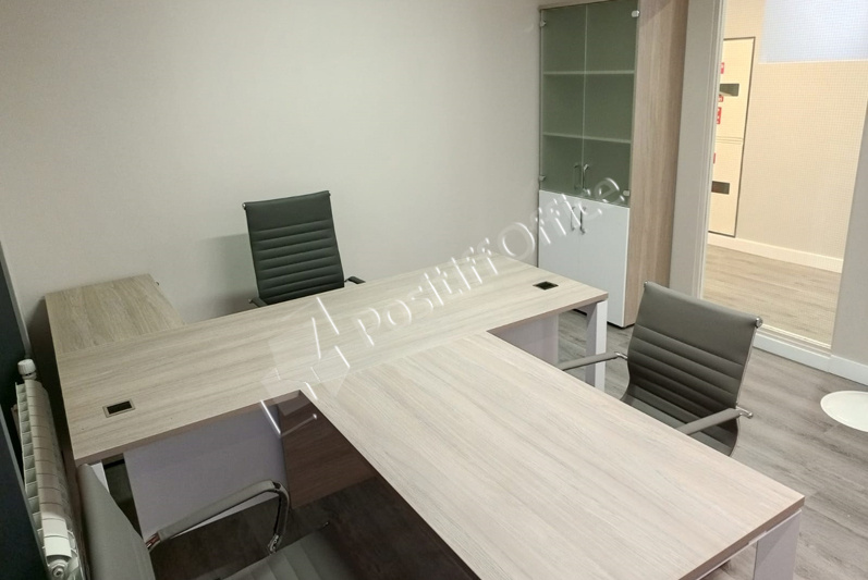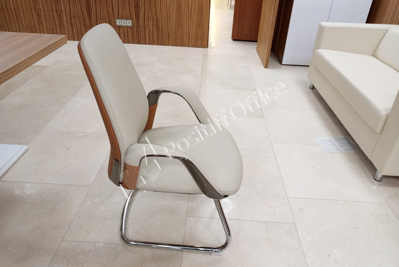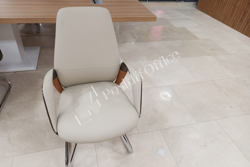 Заместителям руководителя поставили мебель коллекции Onix Direct на металлических О-образных опорах в цвете дуб Аттик белый металл, фасады тумб и шкафов – тоже белый, кресла 6002-1 и 6002-3.