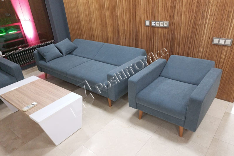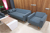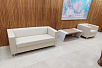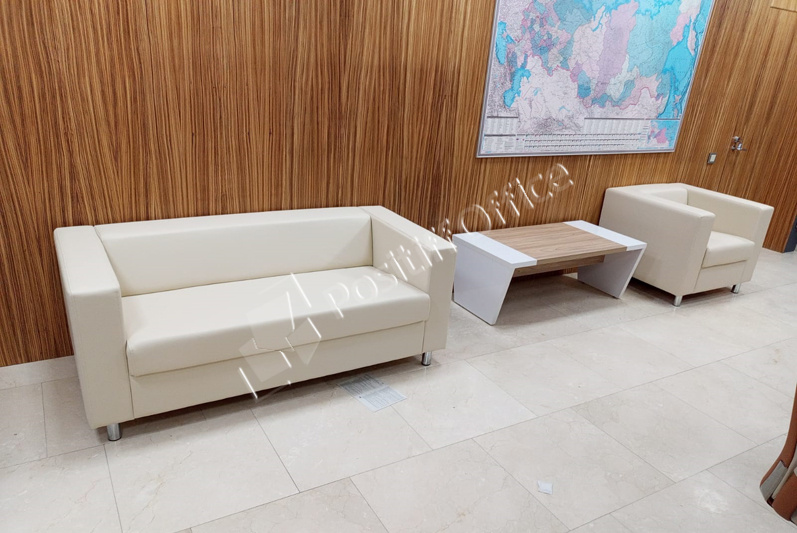 Зона ожидания – диван Аполло и кресло в светло-бежевом цвете – это классика. Всегда смотрится очень стильно и выдержанно.